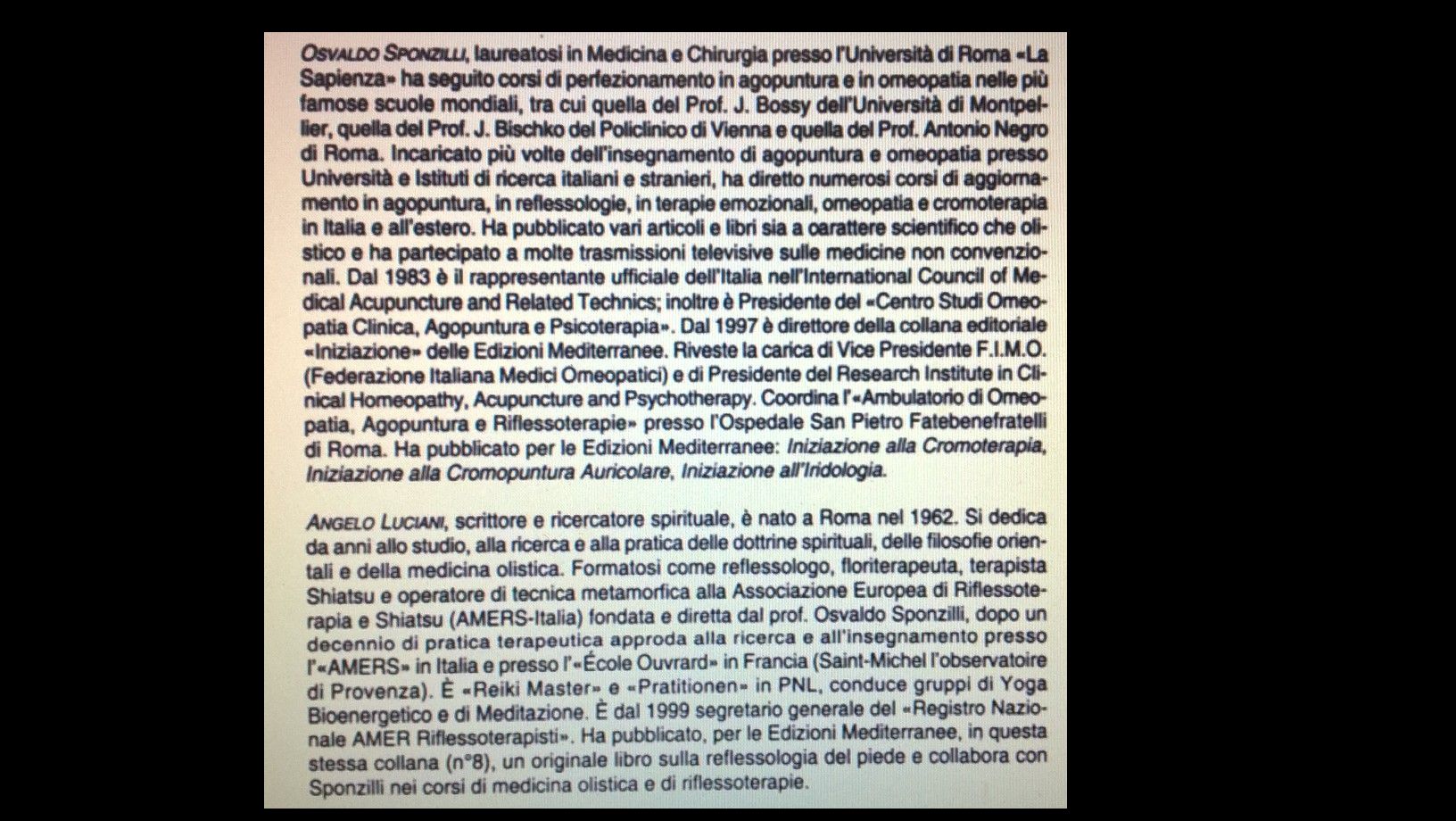 | Angelo Luciani: PRESENTAZIONE COME AUTORE (clicca qui) Angelo Luciani: PRESENTAZIONE COME OPERATORE OLISTICO (clicca qui) |